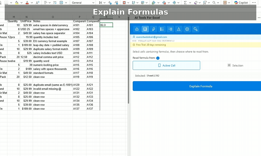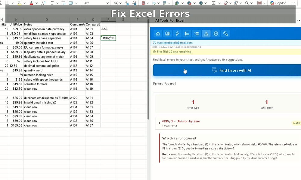 Clean Data, Fix Errors, and Generate Excel Formulas with AI
