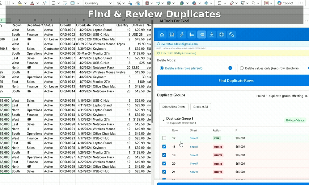 Automatically fix formatting issues, standardize numbers, and clean messy data.Detect and Remove Duplicates