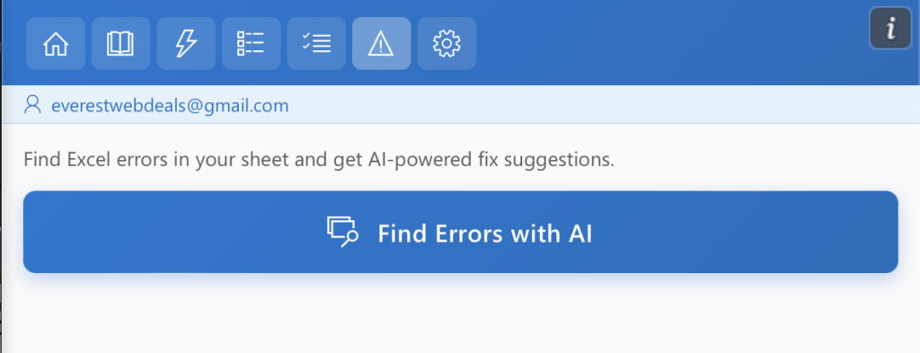 AI Tools For Excel analyzes the sheet and automatically detects cells containing Excel formula errors.